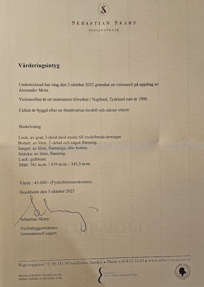 A cello from Vogtland built 1900. Evaluation by International Luthier Expert.